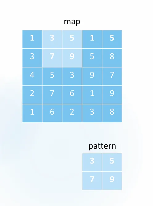 패턴 크기만큼 반복: 2x2 패턴이면 4번 비교