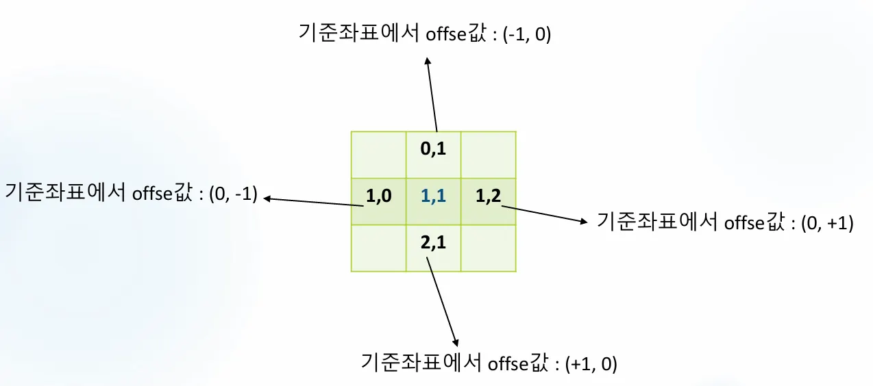 // ex) newX = 기준의 좌표값에 direct 배열의 x 좌표값을 더한다.