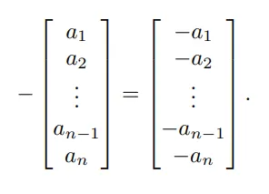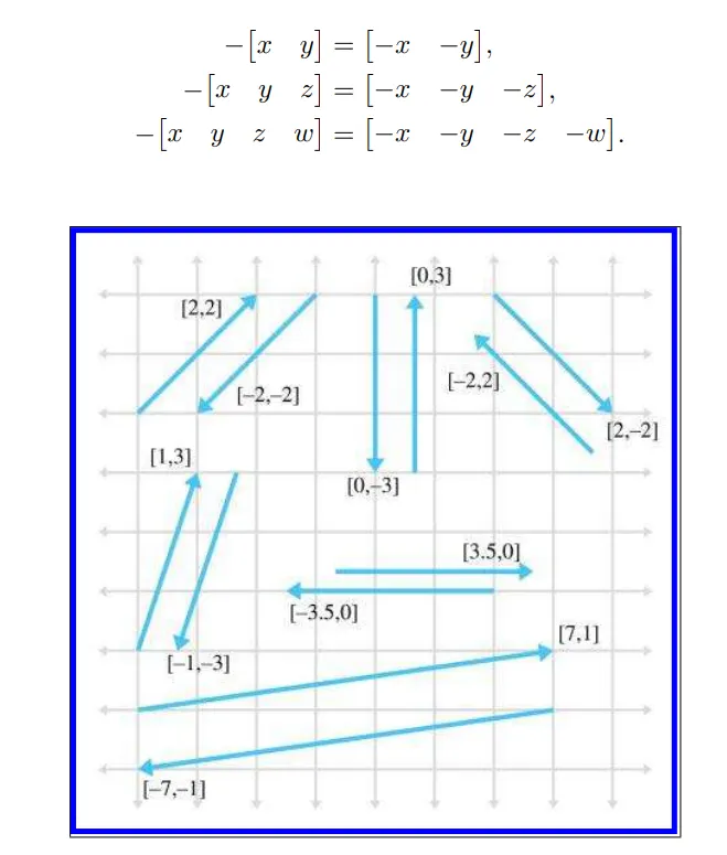 음의 벡터를 표현하는 방법은 각 벡터의 구성요소에 음수만 적용 시켜주면 됩니다.