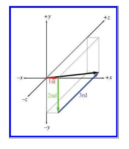x,y,z 순서는 중요하지 않습니다. 앞으로 4 아래로3 옆으로1 만큼 이동할수 있으며 세가지가 모두 결합 됬을때 동일한 변위만큼 이동합니다.