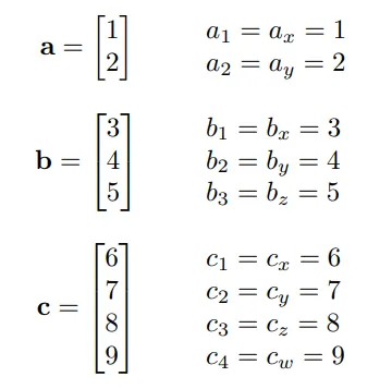 벡터의 각각원소는 벡터의 이름기호 밑에 작은숫자로 표현합니다.