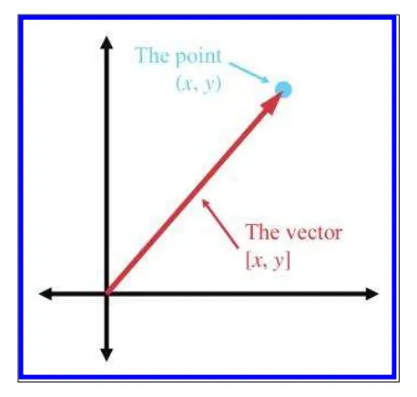 그림을 보면 원점(0,0)에서 얼마만큼의 양이 이동했는지를 나타내는 것이 벡터[x,y] 그 도착지점이 포인트(x, y) 로 표현 됩니다.