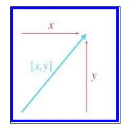 자 이제 벡터를 데카르트 좌표계로 옮겨봅시다. x축과 y축을 사용 하는 2차원 좌표계에서 벡터는 다음 그림과 같이 표현 가능 합니다.