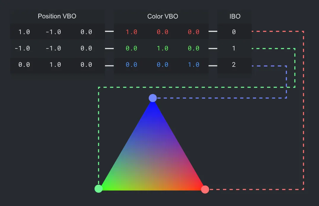인덱스 버퍼에는 그리려는 각 삼각형/선/점의 개별 인덱스가 들어 있습니다.