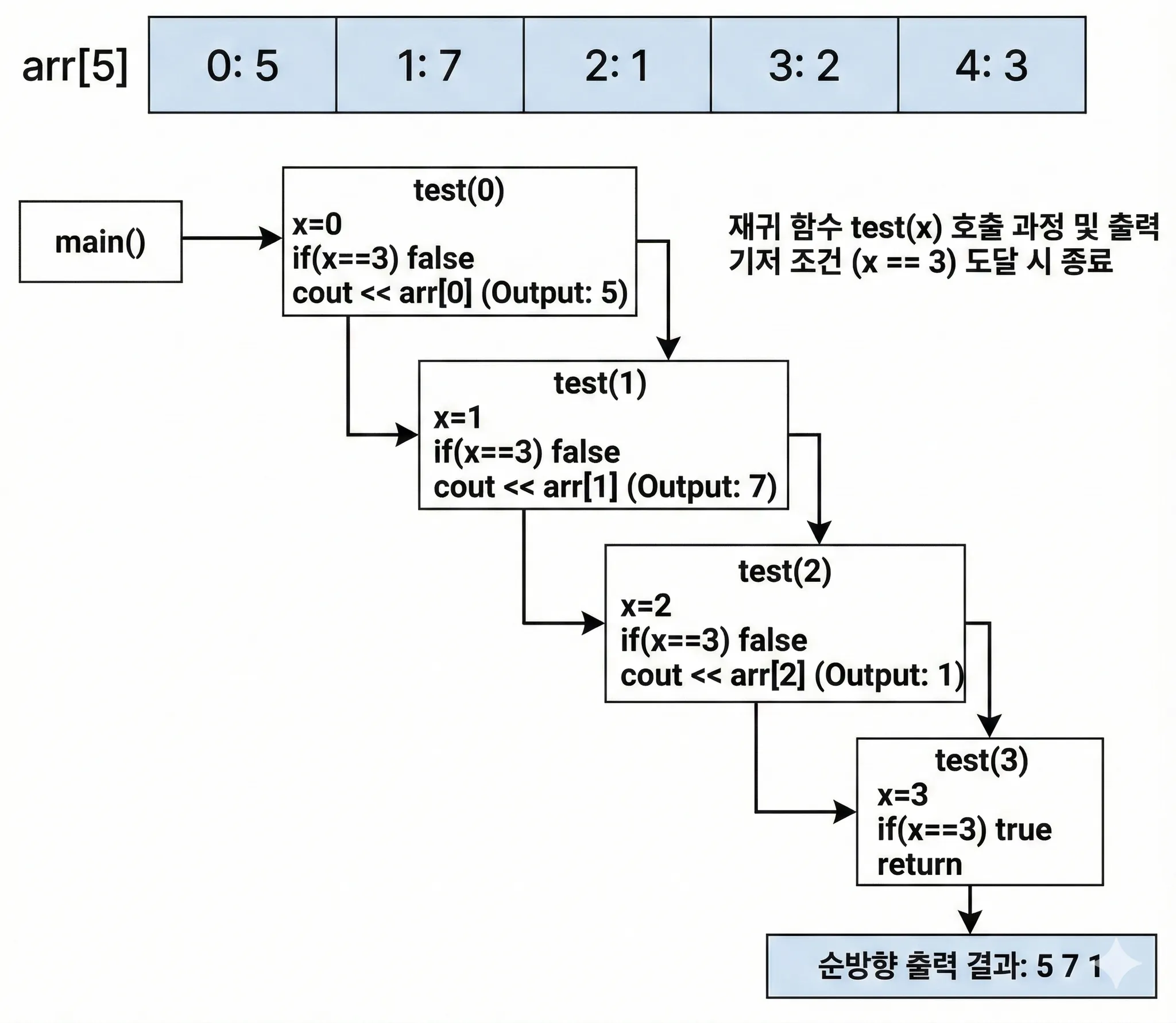 test(0) 호출: x=0, x≠3이므로 test(1) 호출