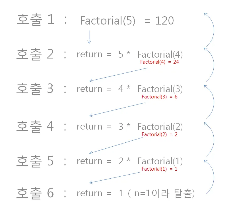 재귀함수란 흔히 나 자신을 호출하는 함수라고 많이들 이야기 하지만 실제로는 코드가 재활용 되어 같은 이름의(다른함수)를 또 호출하는 것이다.