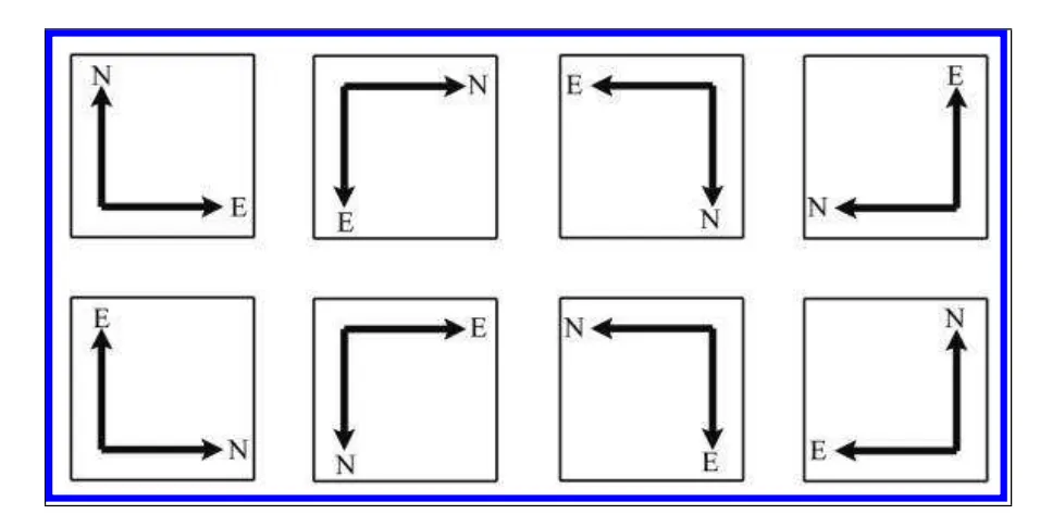 그래서 다음과 같이 총 8개의 방식으로 좌표축을 기준으로잡아 표현할수도 있습니다.