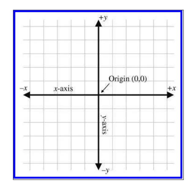그리고 이 중점을 관통하는 두 선이 있습니다. 이를 x축, y축 이라고 합니다. 중점을 기준으로 위아래, 좌우로 표현이 가능하며 각각 양수와 음수로 표현이 됩니다. 또한 무한이 확장이 가능한 특성도 가지고 있습니다.