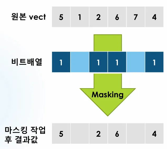 마스크 배열: 1은 선택, 0은 제외를 의미