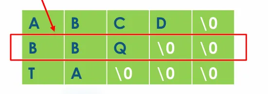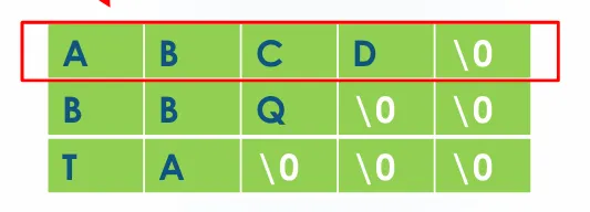 2차원 char 배열에서 각 행의 이름은 해당 행의 첫 번째 문자의 주소를 나타냅니다.