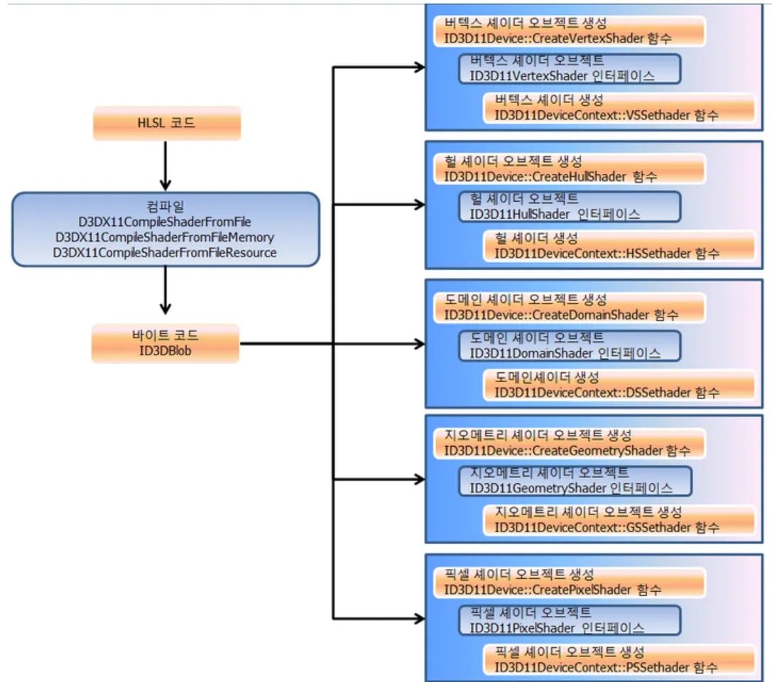 ( ID3DBlob 가 컴파일된 바이트코드를 담아두는 역할을 하며 번거롭더라도 ID3DBlob 를 경유해야 함)
