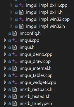 ImGui 소스 파일 다운로드 및 추가: GitHub에서 ImGui 파일을 다운로드하여 프로젝트에 추가합니다.