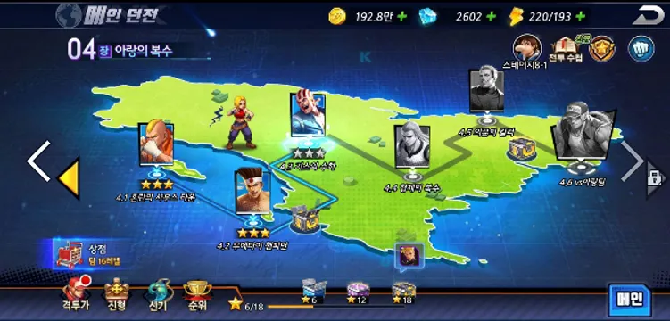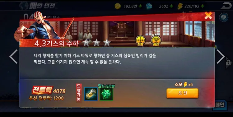 3. 스테이지 화면에서 스테이지 선택 -> 스테이지 정보 화면 ( 팝업 화면 )