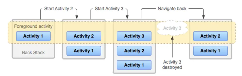 : Android에서는 Activity ( = 하나의 화면이라고 할 수 있는데) 를 관리할 때에 Stack 구조를 사용하여 관리한다.