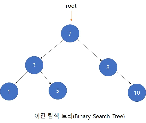이진 탐색의 속성이 이진 트리에 적용된 특별한 형태의 이진 트리