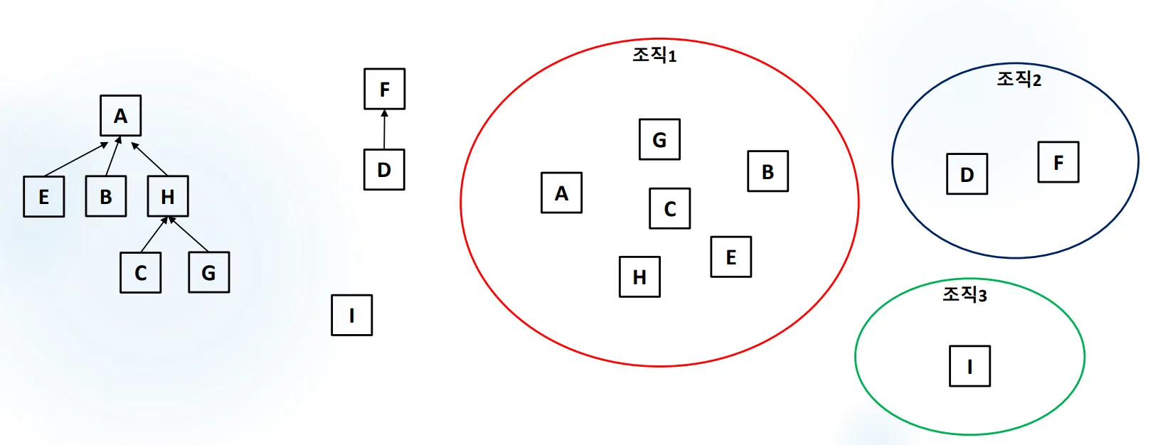 // a는 그룹에 있는데, b는 그룹에 없다.