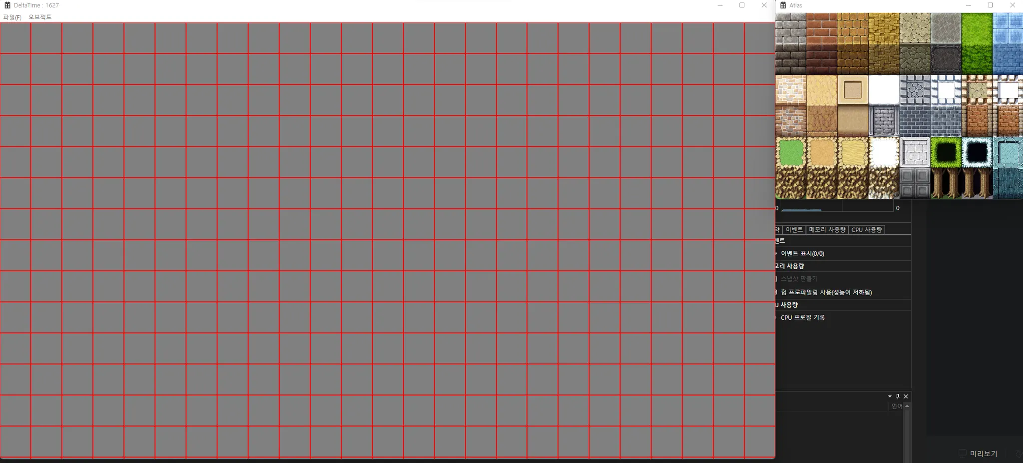 추가적으로 오른쪽에 윈도우를 한개 더 생성하여 타일이미지 모음을 그러주자.
