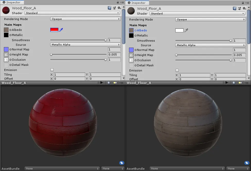Material (머티리얼)이란 메시에 적용하여 씬의 시각적인 모양을 조절할 수 있는 애셋입니다. 넓게 보면, 머티리얼이란 오브젝트에 적용할 수 있는 "페인트"라 보면 됩니다. 하지만 그것도 약간 오해의 소지가 있는데, 머티리얼이란 말 그대로 오브젝트가 어떤 재질로 만들어졌는지를 정의하는 것이기 때문입니다. 그 색이나 광택, 투과성 등을 정의할 수 있습니다.