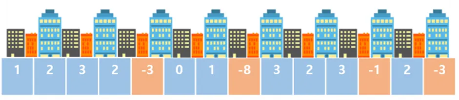 최대 수익이 되는 빌딩의 startIndex와 endIndex를 구해주세요.