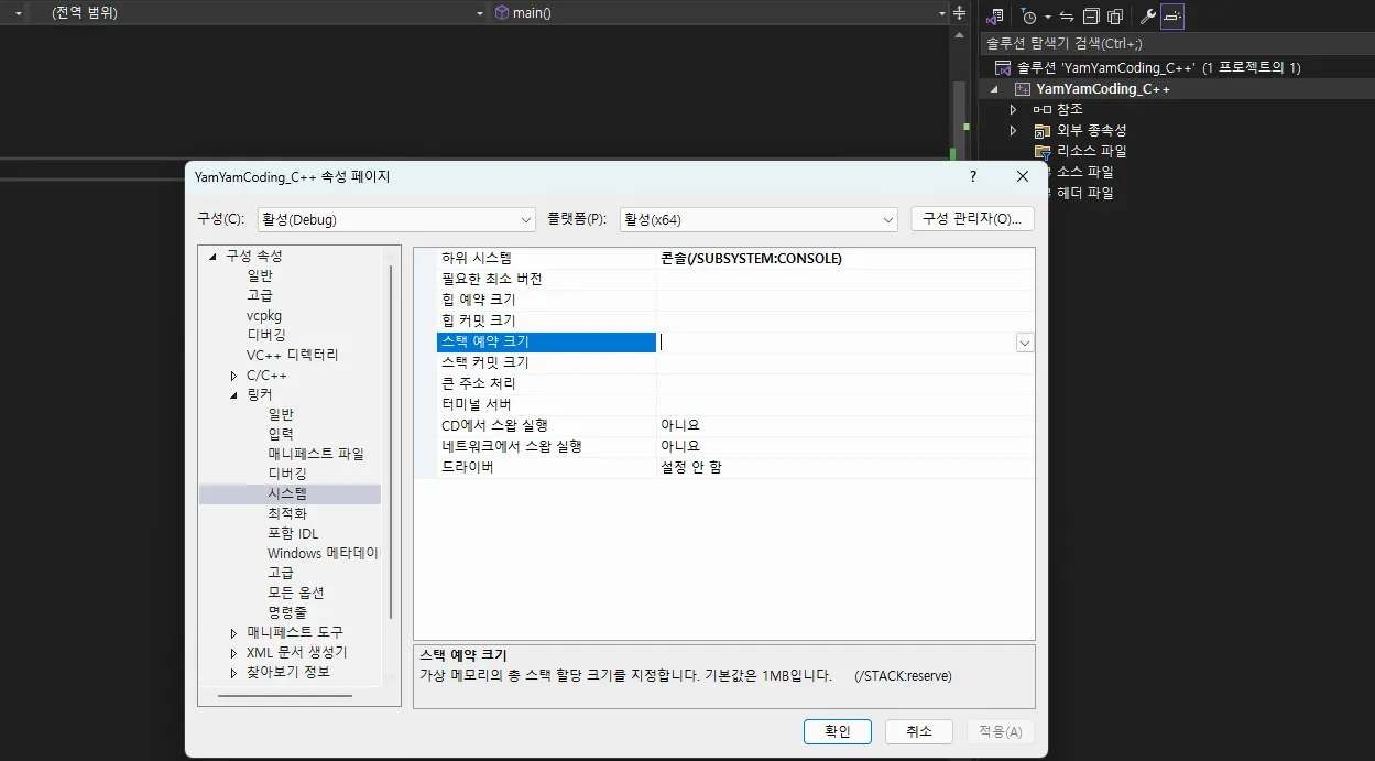 비주얼 스튜디오에서 스택 크기 변경 방법